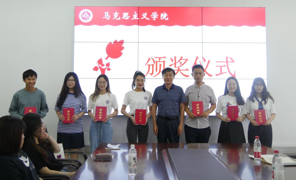 会上,周守高老师和张伟伟老师分别宣读了《pp电子官方网站2021年春季马列经典读书会表彰决定》、《pp电子官方网站马克思主义学2020-2021学年度第二学期表彰决定书》,对表现优异的24名同学分别给与了表彰颁奖。