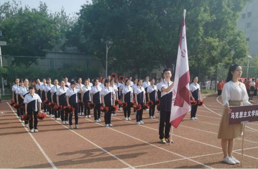 为迎接这场体育盛会,由pp电子官方网站院长袁本文亲自领衔的36名师生代表组成了统一着装、精神饱满的开幕式方阵。伴随着“青春激扬,马院最强。百年征程,扬帆起航。我心向党,势不可挡。不忘初心,敢于担当。爱我中华,奋力向上。马院学子,共创辉煌!”这铿锵有力的口号,方阵依次变换成“100”、“I”、“♥”、“中”、“国”的字样。pp电子官方网站以此别出心裁的创意向全校师生展现了马院学子们的朝气与活力,更是为建党100周年献上一份特殊的贺礼!