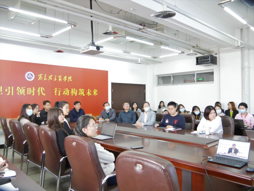 为贯彻落实习近平总书记重要讲话精神,引导广大青少年从党史中汲取智慧力量、践行使命担当,3月31日下午,pp电子官网于1208会议室,组织全体师生观看由现任中央委员会候补委员、中央党校副校长谢春涛同志主讲的“首都百万师生同上一堂党史课”之系列网络公开课第一讲——中国共产党为什么能。