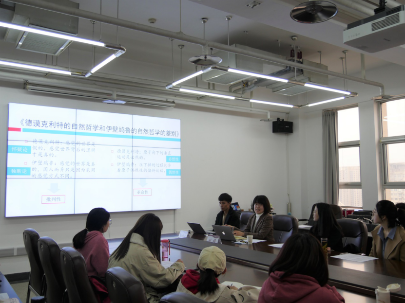 读书会以“真学、真懂、真信、真用、真教”为宗旨,以阅读马克思主义经典原著为方向,采取句读研讨、师生互动、专家讲解等丰富形式,坚持打造pp电子官方网站学术共同体。以教师推荐读本、学生自荐领读、师生共同研读的形式,本学期经典读书会共策划开展八期经典阅读活动,书目涉及哲学、文学、历史学、社会学等多个领域。本期读书会围绕马克思的博士论文《德谟克利特的自然哲学和伊壁鸠鲁的自然哲学的差别》进行阅读讨论,共分为“学生领读、教师解读、交流提问”三个环节。