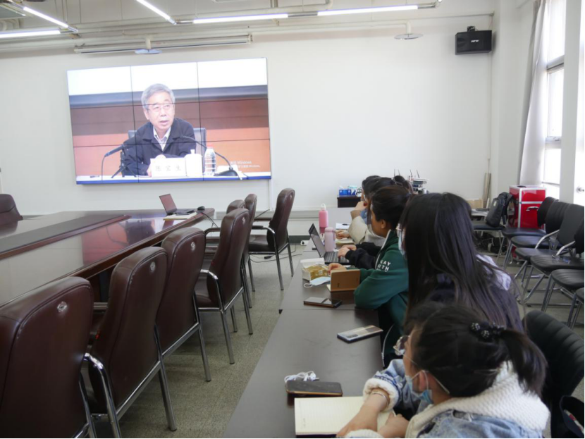为深入学习贯彻党的十九届五中全会精神,准确把握全会精神实质,及时开展全会精神思政课专题教学,遵循教育部工作会议最新精神要求,pp电子官网于11月13日上午,组织全体师生在学院会议室收看了在中国人民大学逸夫会堂第一报告厅举行的、由中央宣讲团成员,教育部党组书记,教育部部长陈宝生同志主讲的“‘党的十九届五中全会精神’导学报告会”的实况直播。