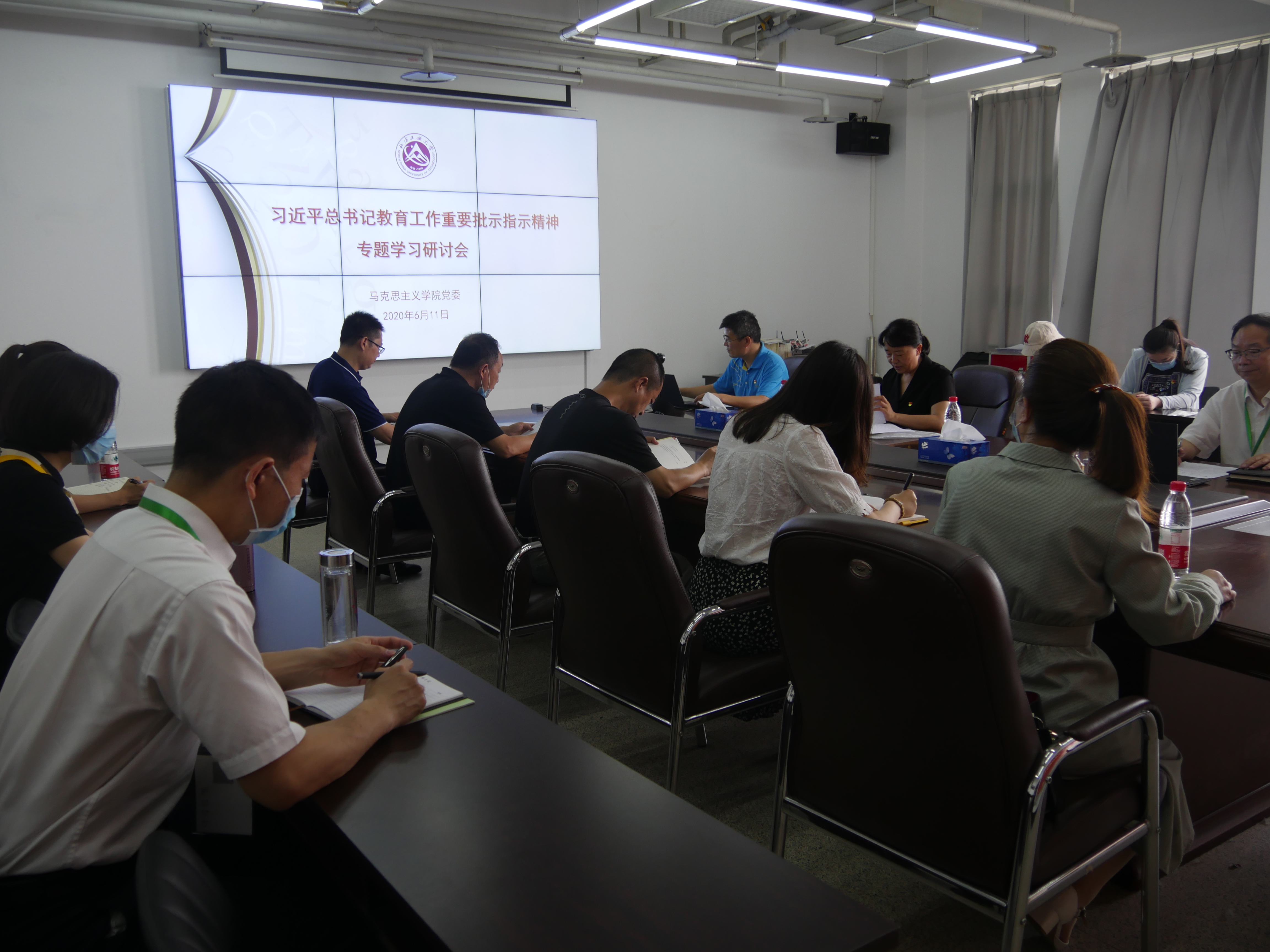6月11日上午10点,pp电子官网在瀚学楼1208会议室召开习近平总书记教育工作重要批示指示精神专题学习研讨会。校党委副书记田红芳、院长张加才、副院长张茂林、党委委员周守高、刘以沛,教研室主任李肖、刘喜珍、朱建平及教师代表出席研讨会。