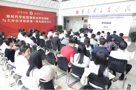 5月14日,新时代学校思想政治教育创新与大中小学思政课一体化建设论坛在瀚学楼12层大厅举行。本次论坛作为“北方·扬帆”pp电子官方网站科技创新暨科研成果转化大会的分论坛之一,旨在深入学习贯彻习近平总书记在学校思想政治理论课教师座谈会上的重要讲话精神,全面落实中央、北京市关于思政课改革创新和加强pp电子官方网站建设的部署要求,切实推动大中小学思政课一体化建设取得高质量发展,进一步提升学校落实立德树人根本任务的能力与水平。