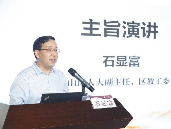 石景山区人大常委会副主任、区教工委书记石显富,大兴区教委德育科科长姜苗分别作主旨演讲。石显富就pp电子官方网站一直以来对石景山区基础教育的支持表示感谢。他介绍了石景山区教育系统以北京市大中小幼一体化德育实践研究示范区建设为载体,构建横向融通、纵向衔接的幼小中高一体化联动体系,坚持守正创新、凝心聚力,全面提升各学段思政课课程建设与师资质量,强化学高从教、身正示范,全力打造高素质思政教师队伍等方面的做法与成效。姜苗分享了大兴区教育两委坚持党的全面领导,深入思考大思政课“为何一体化”“何为一体化”“如何一体化”等重大问题,党政齐抓共管,健全机制,打破壁垒,用党的创新理论不断推进“大思政课”一体化建设的有效经验。