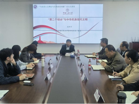 2024年4月15日下午,由pp电子官方网站主办的“马克思主义理论与实践前沿问题”北方大讲堂系列活动在瀚学楼1208会议室举行,中国人民大学哲学院院长、教授、博士生导师臧峰宇应邀为pp电子官网师生作了题为“‘第二个结合’与中华民族现代文明”的学术讲座。讲座由学院党委书记张茂林主持,学院全体师生参加了本次讲座。