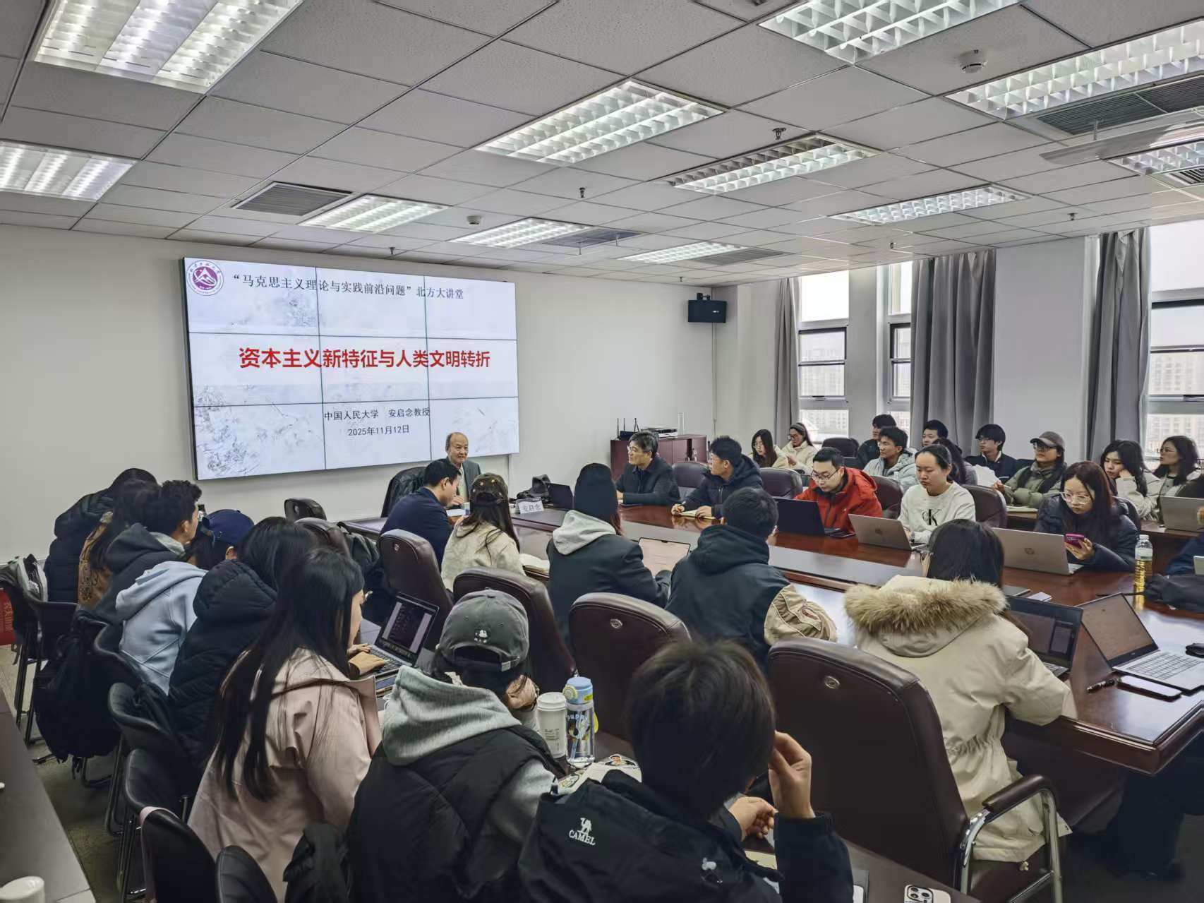 交流互动环节,就师生提出的问题,安教授都予以详尽解答,解决了同学们在研究和论文写作过程中遇到的许多困惑。张茂林对安教授的讲座进行总结发言。他感谢安启念教授为师生带来的精彩分享,并指出安教授讲授内容视野宏阔、论证严谨,兼具理论深度与现实关怀,充分激发了师生对资本主义演进与人类文明前途的深入思考。